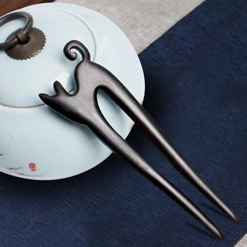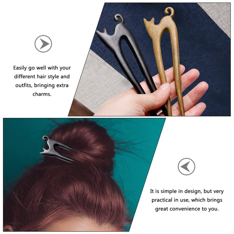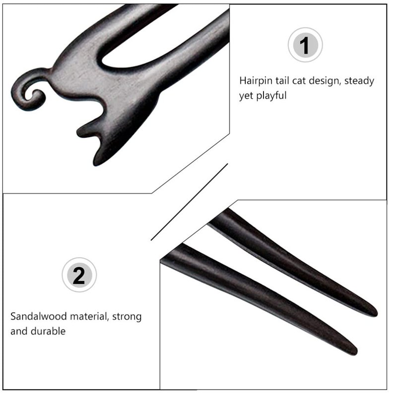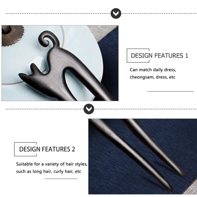 Mobestech Chinese Wood Hair Stick Cat Carved Hair Fork Stick Vintage Hair Styling Pins Hair Chopsticks Pins for Women Girls, Black