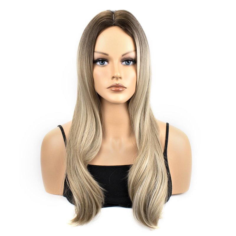 MocNeavian Blonde Wigs for Women 23 Inches Long Wavy Ombre Blonde Wigs Middle Part Ombre Natural Looking Synthetic Fiber Heat Resistant Wig Women's Wigs for Daily Use Women's Charming Wigs