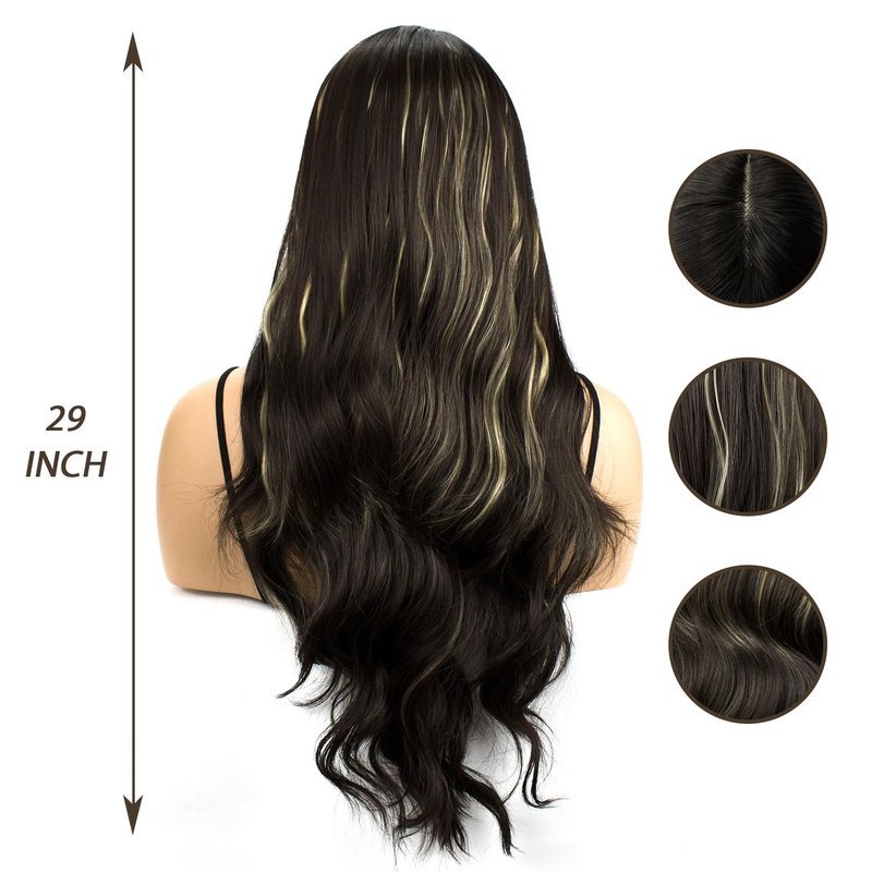 - 【Long Wigs Style】Length of this wigs is 25 inches. This wavy wig can enhance your face shape. brown and gold ombre wigs can complement your skin tone, making women look more charming and charming. It can be trimmed according to your needs to obtain another appearance.