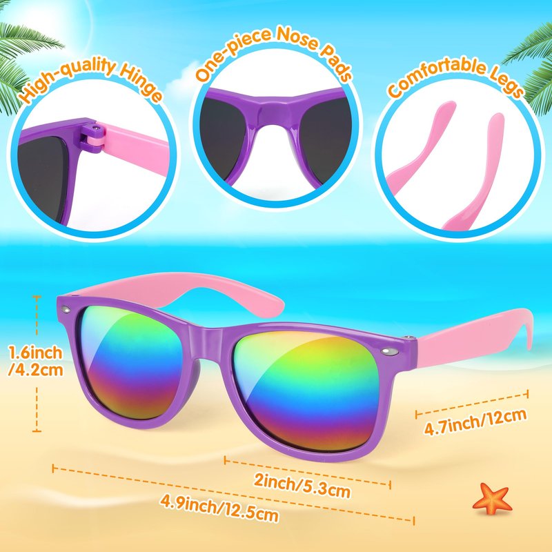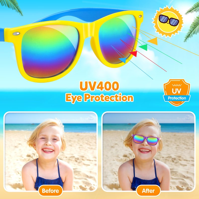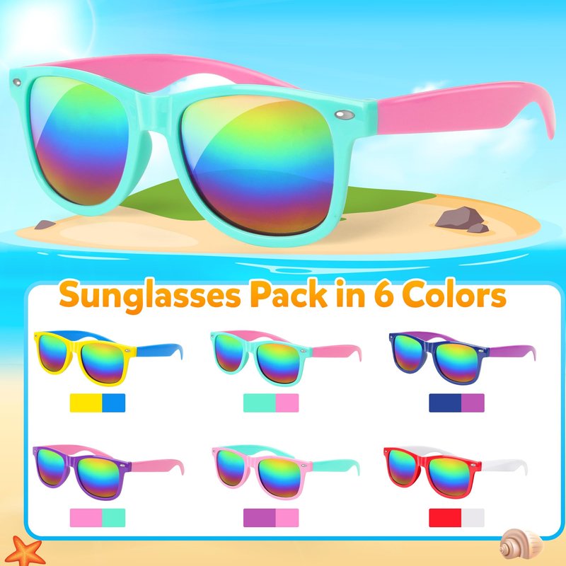 - Protect Your Kids' Eyes with Style: Our sunglasses party favors are not just stylish; they also provide crucial protection features UV400, effectively blocking harmful UVA and UVB rays. Which can lighten the fatigue state of your kids' eyes. Meanwhile, neon sunglasses can maintain clear vision and natural color. Every edge is smoothed and polished. Enjoy fun in the Sun!