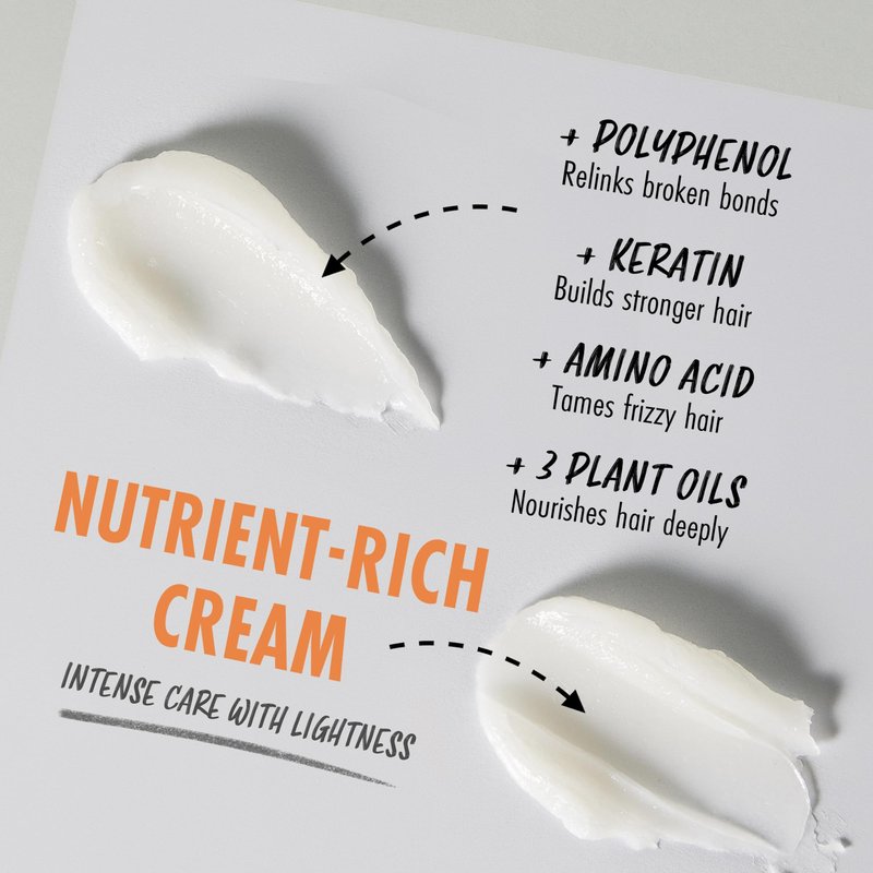 Our proprietary Silk Change Complex Technology, combined with the power of Polyphenols and Keratin, provides fundamental care by binding and connecting split ends, ensuring visible results in seconds. This innovative hair straightening conditioner formula acts as a binder with Keratin, improving the inner structure of damaged hair and wrapping each strand to repair damage and split ends.