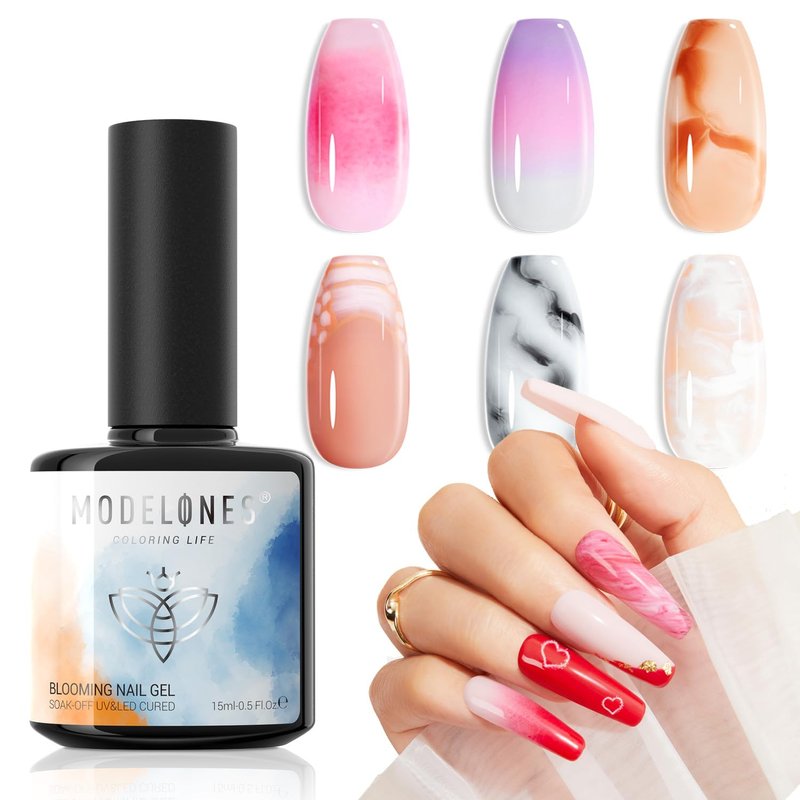 - ❤ Unique gel FORMULA:Modelones blooming gel polish is made with a unique formula, tested over 10000 times to find the most suitable consistency, making the blooming smoother, allowing you to easily apply and bloom any color you want.