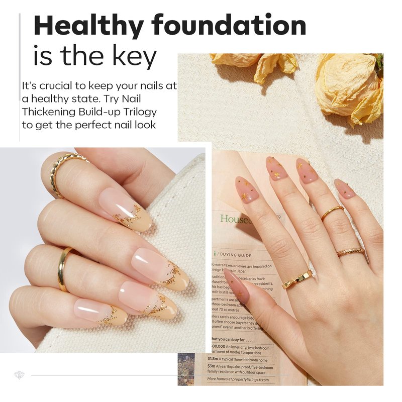 - 1+2>3 Nail Thickening Build-up Triology: Upgraded Nail Thickening Protection Trio Set with 1* Clear Builder Nail Gel + 1*15ml Acid Free Base Coat + 1*15ml Shiny Top Coat. Exclusive combination for providing triple nail thickening protection for thin, soft, or brittle cracked nails, perfect for building the look you’ve always dreamed of, and achieving the best modern salon-looking gel mani at home with a small fee. (NOTE: Need to be cured under UV/LED lamp for 60-90s)