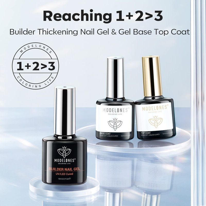 Modelones 3 Pcs 15ml Nail Thickening Builder Nail Gel with Gel Base Top Coat Set