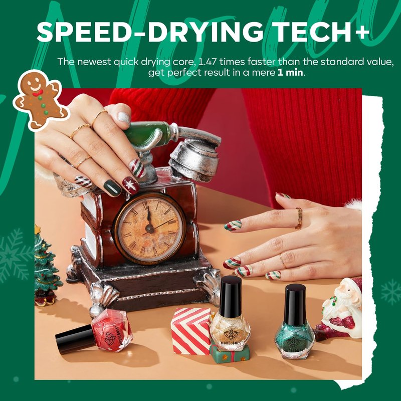 - Quick-Drying Formula: Do you find waiting for nail polish to dry frustrating? Our nail polish set dries in just about 90 seconds! It's a game-changer for anyone with a busy schedule or those who simply want to avoid smudges and nicks caused by longer drying times.