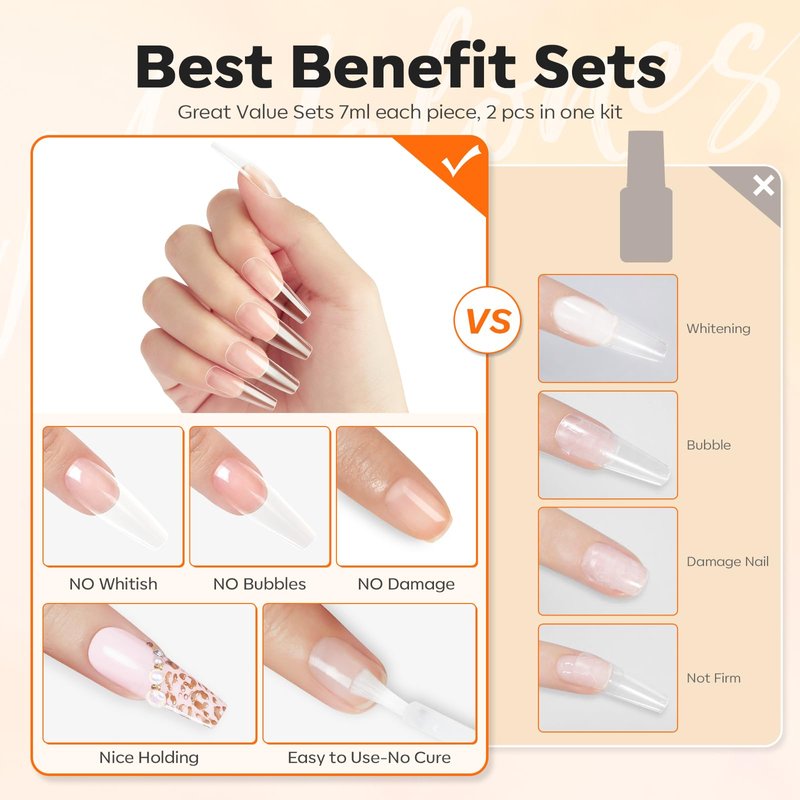 - 🔥Quick Dry & Easy to Use: This nail tip adhesive with fine precision brush applicator, is easy and convenient to apply for gel extension nail glue. No need for nail lamp,just a seconds to glue on nails.