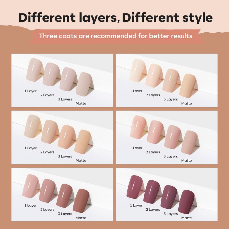 - 【Popular Colors for All Seasons】 6 colors beautiful shades of popular and trendy colors suitable for all seasons and daily routine life! This natural nude pink brown nail polish that colors have been carefully selected to suit any occasion, season, and outfit. Whether you're going for a sophisticated look in the office or a relaxed style for a beach vacation, these shades got you covered!