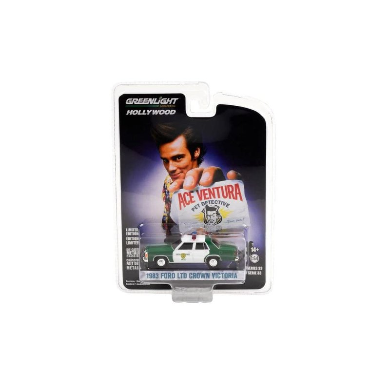 Get your hands on this high-performance movie car from Greenlight! This Miami-Dade Police Department 1983 Ford LTD Crown Victoria is a 1/64 scale model replica. It comes in green and features real rubber tires, detailed exterior, metal body and chassis, comes in a blister pack. It's an excellent item for any movie car collection, and just right for enthusiastic Ace Ventura: Pet Detective buffs!