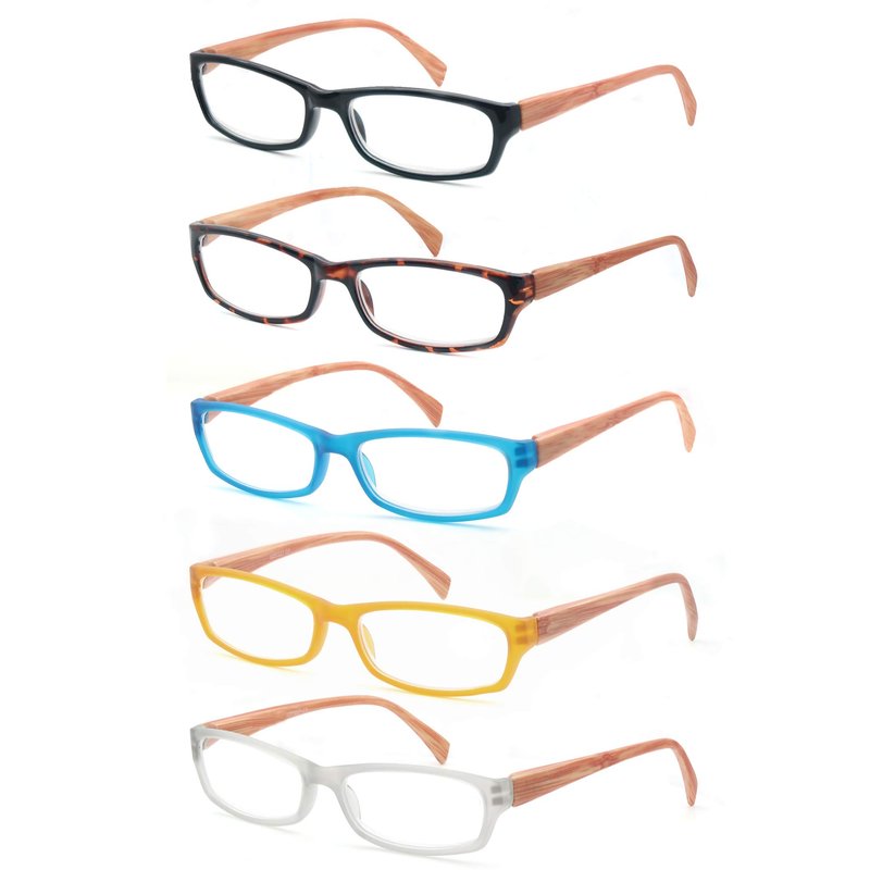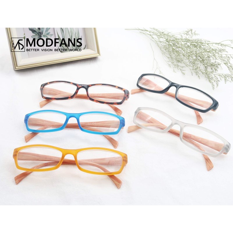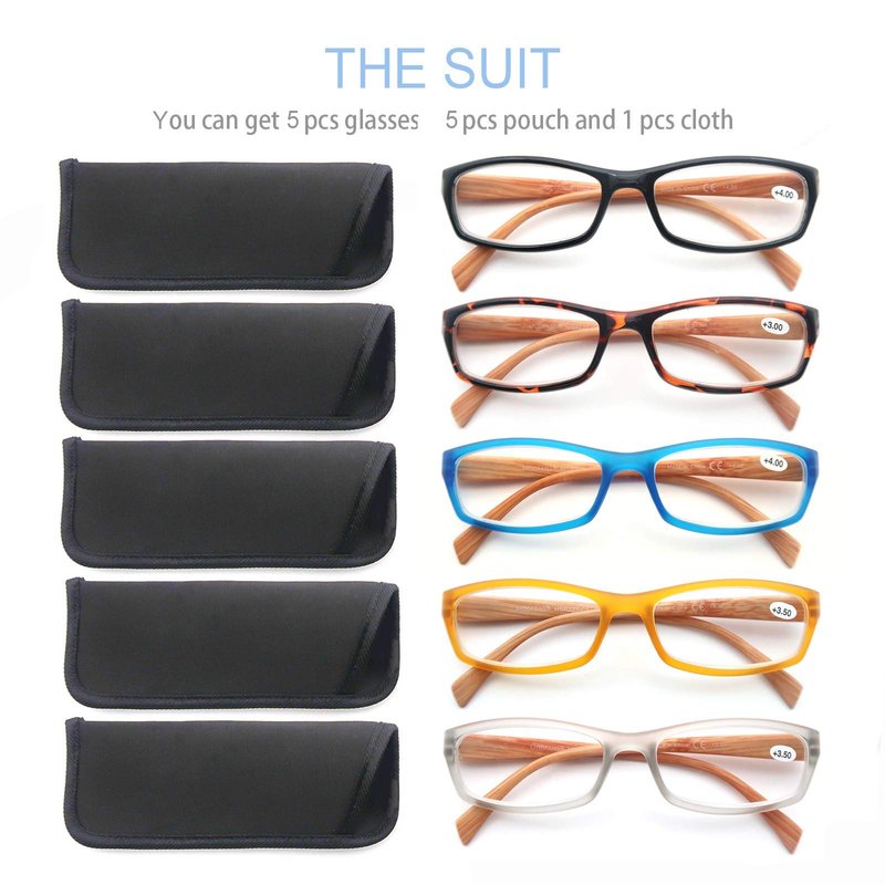 MODFANS 5 Pack Reading Glasses Women Men,Wood-Look Square Readers Spring Hinges 5 Pouch