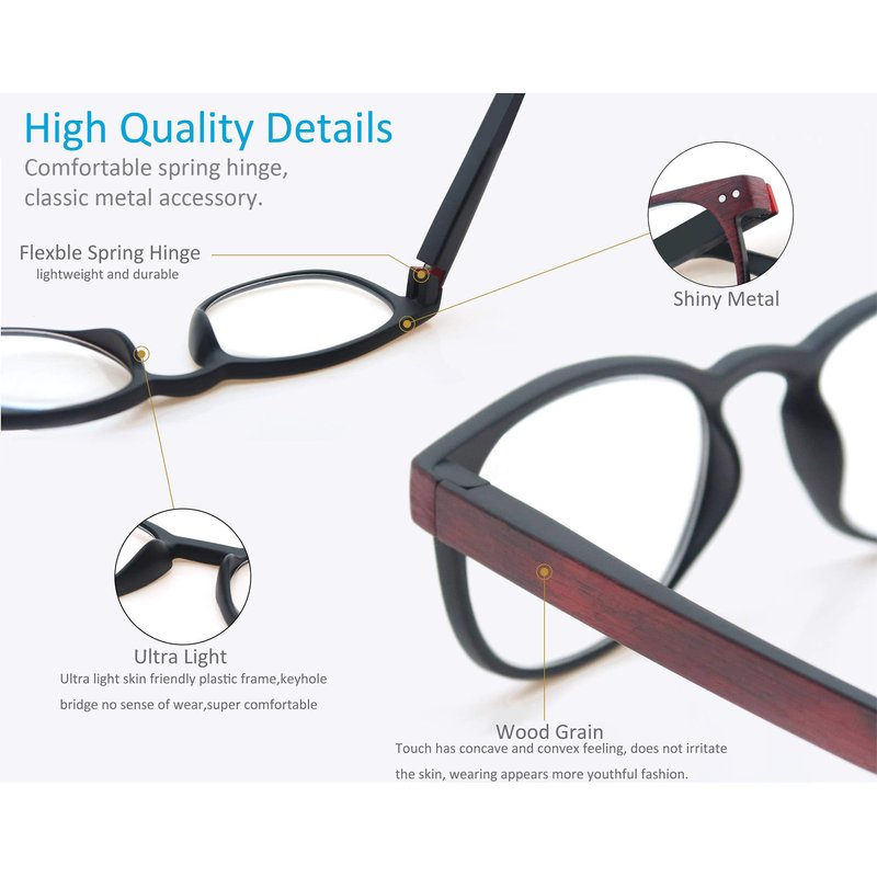 MODFANS Reading Glasses Women/Men Wood Look Round Frame Includes Sun Readers glasses for outdoors 5-Pack Comfort Flexible?Spring Hinge Lightweight with soft case 3.5