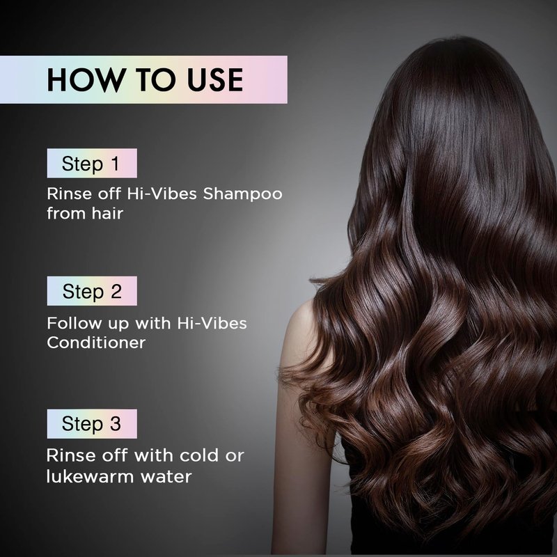 - ✔️ HOW TO USE THE COMBO – Add the vegan shampoo and conditioner to your regular haircare regime. The combo improves overall vitality, and is infused with hair-boosting proteins. Take a generous amount of the Hi-Vibes vegan moisturizing shampoo, apply it on wet hair, and rinse off. Repeat as required. Follow up with the Hi-Vibes vegan hair conditioner, allow it to sit for 3 to 5 minutes, and rinse thoroughly with cold or lukewarm water