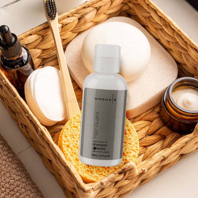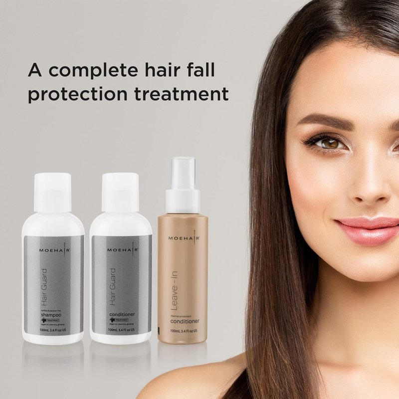 MOEHAIR Travel Trio Pack of Hair guard shampoo (3.4 FL), Hair Guard conditioner (3.4 FL) and leave-in conditioner (3.4FL) | Travel Size Moisturizing and Hydrating Hair Care Set