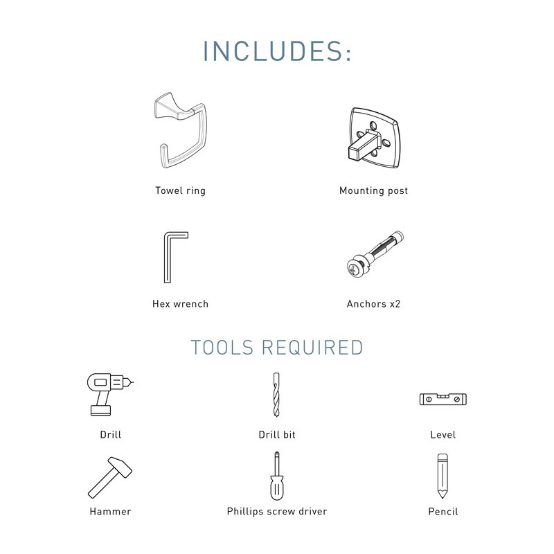 Moen YB5186CH Voss Collection Modern Square Wall Mount Bathroom Hand Towel Ring, Chrome