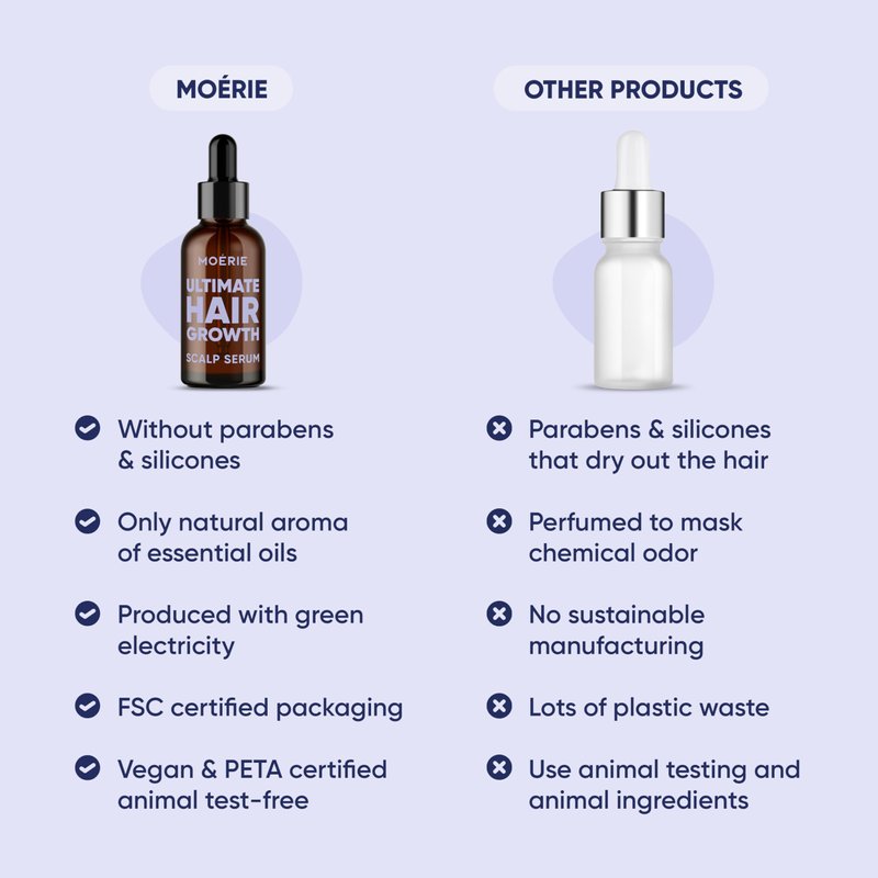 MOERIE Ultimate Hair Growth Serum for Natural Hair Regrowth & Thickening - Anti Thinning & Hair Loss Treatment for Women - Rapid Hair Growth Products - Scalp Oil Alternative - 1.69 fl oz / 50 ml