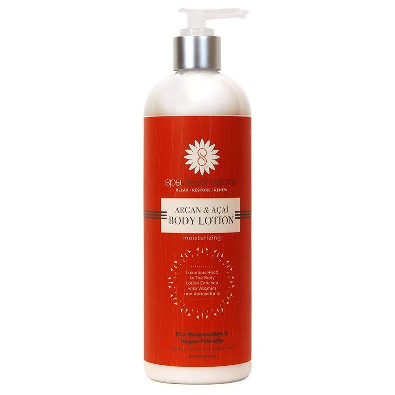Enjoy timeless, supple skin with Spa Destinations Argan & Açaí Body Lotion enriched with Pure Argan Oil and Açaí Berry Extracts. Resore, Renew and replenish the appearance of your skin with the finest combination of natural extracts rich with Essential Fatty Acids, Vitamin E, Omega 6 and Omega 9. Balance your skin for a youthful radiant glow.