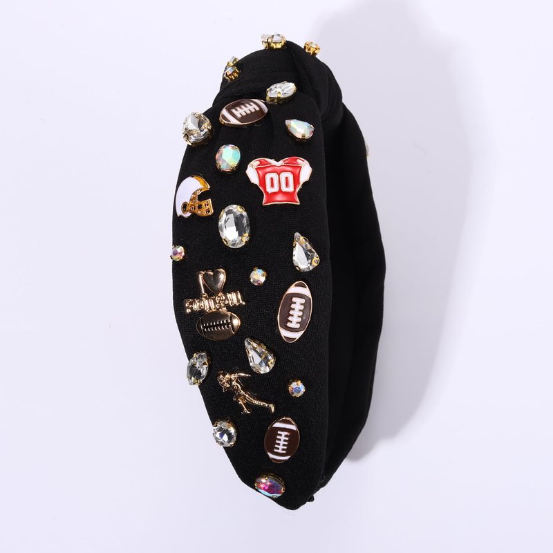- ★ Football Knotted Headband: Cheer on your favorite team and flaunt your team spirit in style with our sports headband. With a classic top knot design, our football headband features enamel football charms, jersey charm and helmet charm embellishments and stunning rhinestone accents. Show support for football or favorite player with our jeweled headband, the perfect womens football accessories for game day, team events, football games, or as a stylish way to show off your love for the game