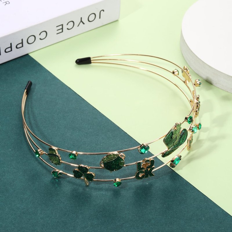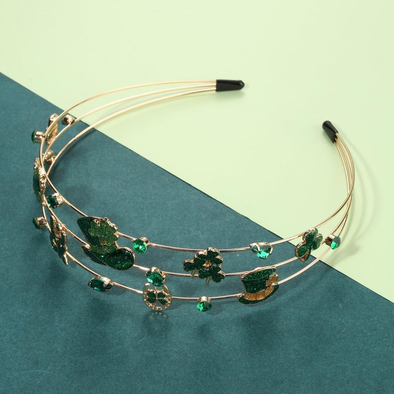 mokkia St.Patrick's Day Headband Accessories for Women Enamel Green Shamrock Headband Jeweled Rhinestone Headband St.Patrick's Day Outfits Holiday Gifts (St.Patrick's Day 1)