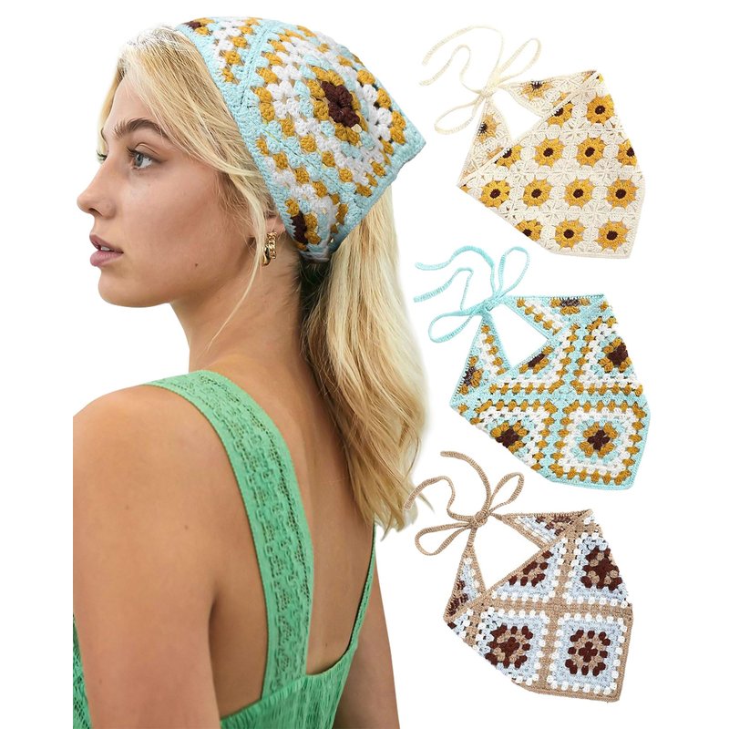 Molans Floral Bandanas Crochet Hair Scarf - 3Pcs Women Knitted Headscarf Daisy Headband Vintage Head Kerchief for Girls
