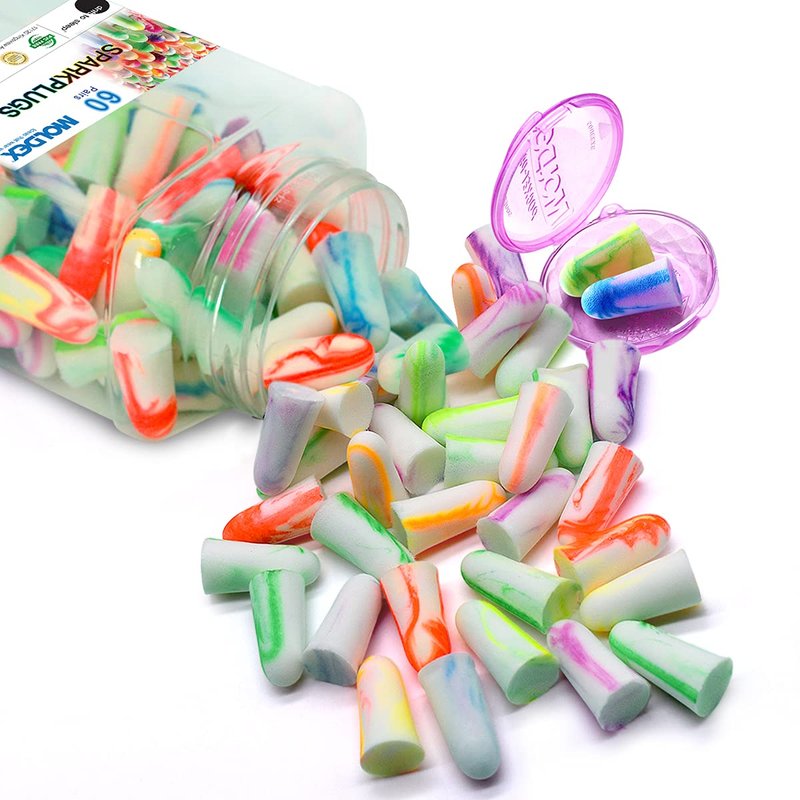 Moldex SparkPlugs earplugs are made of extra-soft, extra light foam. Their tapered shape fits easily in the ear canal, seals gently and snugly without pressure. They’re so comfortable you’ll forget you’re wearing earplugs. SparkPlugs earplugs offer a high NRR 33, making them suitable for most noisy environments. So, while they look like fun, they provide serious protection. 100% PVC-Free. Extra-soft, low-pressure foam for comfort and fit. Tapered shape for easy insertion and removal. Shaped to fit even very small ear canals. Non-irritating smooth surface.