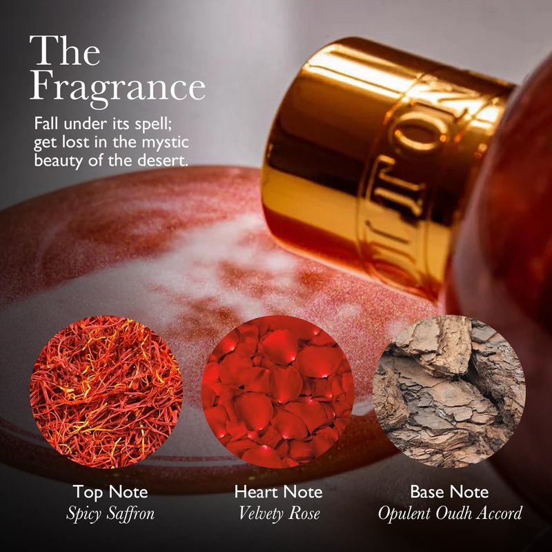 - A body lotion with a rich aroma of Amberley Rose, representing the mysterious beauty of the Arabic Desert
