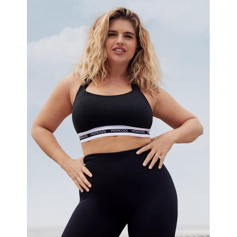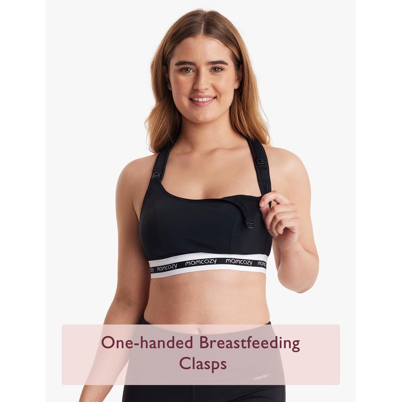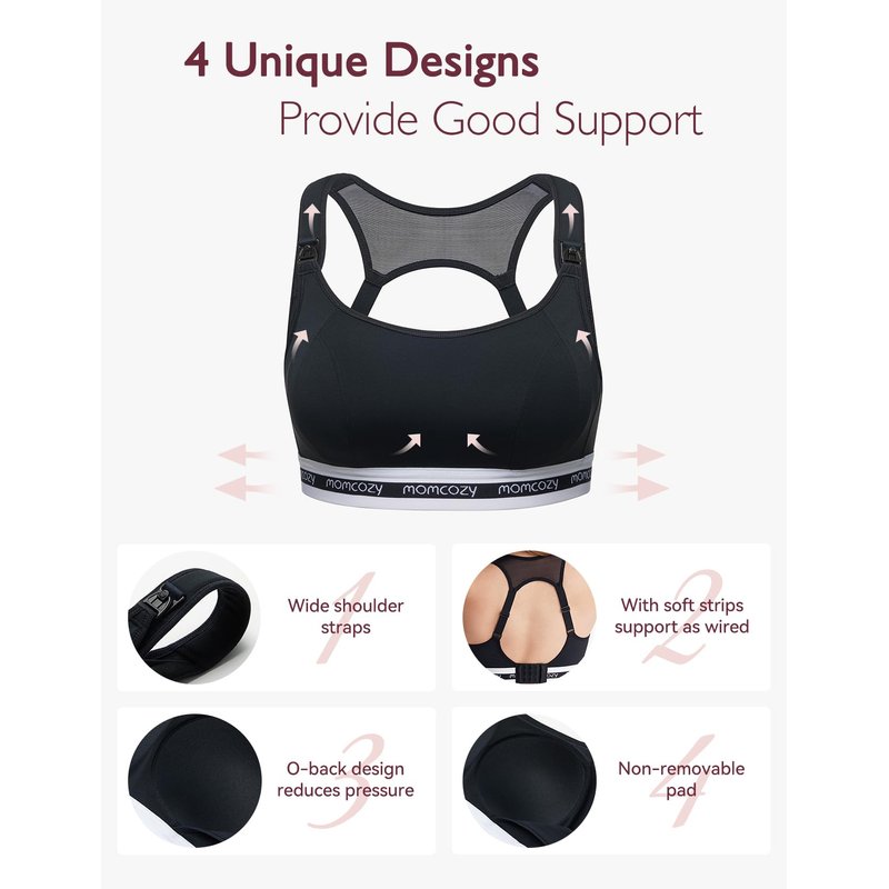 Momcozy Nursing Bras for Breastfeeding, FB011 Low-Impact Nursing Sports Bra Support Maternity Pregnancy Padded Wireless Bralette Black