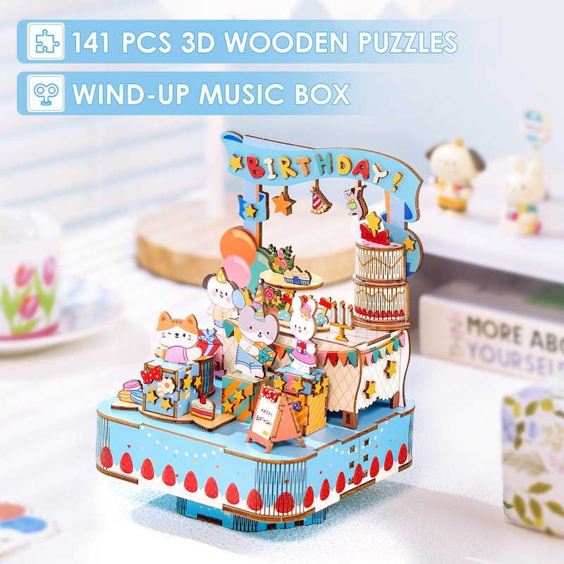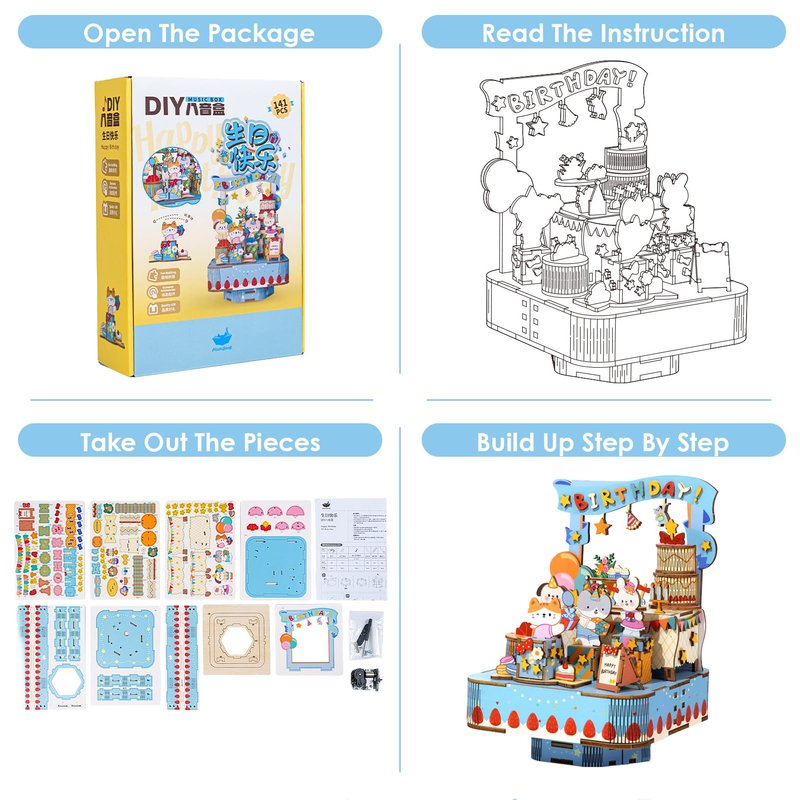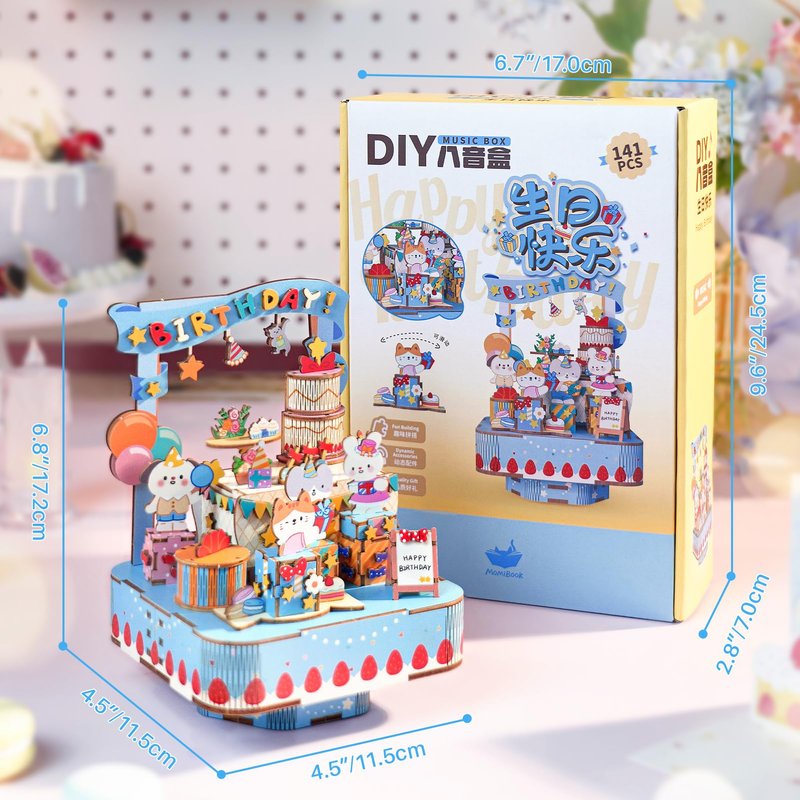- Happy Birthday Theme: MOMIBOOK wooden music box puzzle kit comes with exquisite packaging and is suitable for ages 14 and above. Hand-assembling a Happy Birthday music box to give to family and friends is of great significance. Christmas surprise, birthday surprise, Valentine's Day surprise, Mother's Day surprise, Father's Day surprise, New Year surprise, beautiful & creative choice for families, friends, lovers