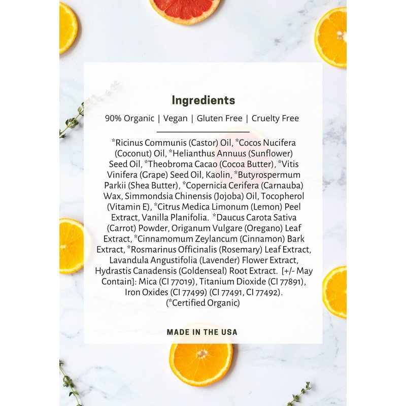 100% All Natural, Vegan, Gluten Free, and preservative free lip gloss is made with certified Organic ingredients and made in the USA.