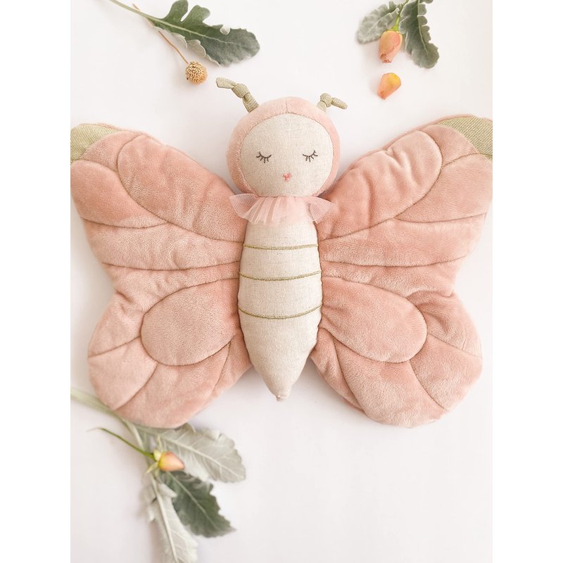 Hearts are aflutter for Mon Ami’s new butterfly stuffed toy Bettina, gliding into nurseries and playrooms everywhere. Stunning velour wings and exquisite gold accents ensure Bettina the butterfly plush toy lands a prime place during playtime. Ready to cuddle and embark on fantastical adventures, our whimsical butterfly stuffed toy is the perfect present for a little girl’s birthday, preschool graduation, or other milestone event.