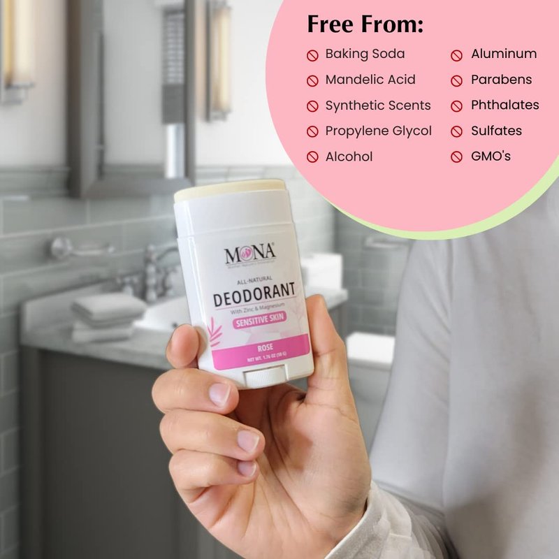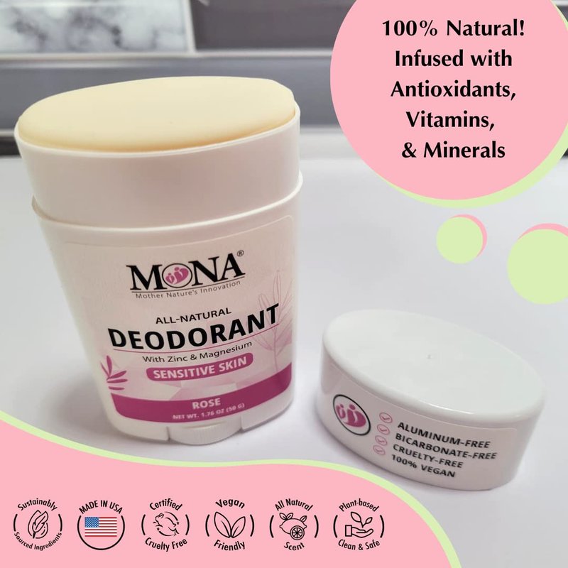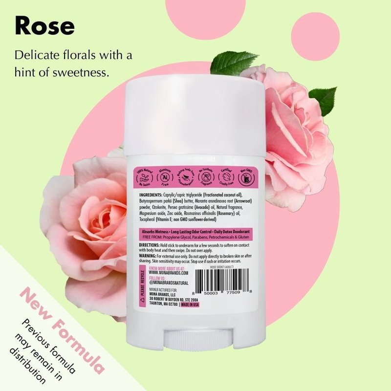 MONA BRANDS All Natural Deodorant For Women & Men | For Sensitive Skin | No Aluminum or Baking Soda | (2-Pack ROSE 1.76 Oz each)