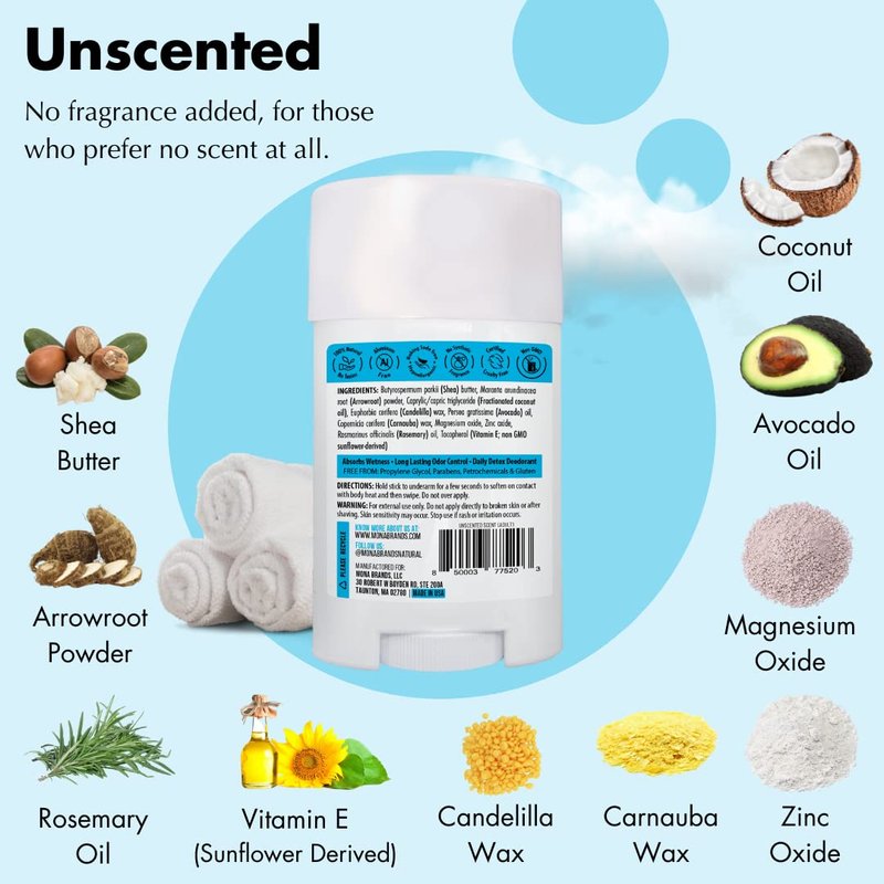 MONA BRANDS All Natural Deodorant For Women & Men | For Sensitive Skin | No Aluminum or Baking Soda | (UNSCENTED 1.76 Oz)