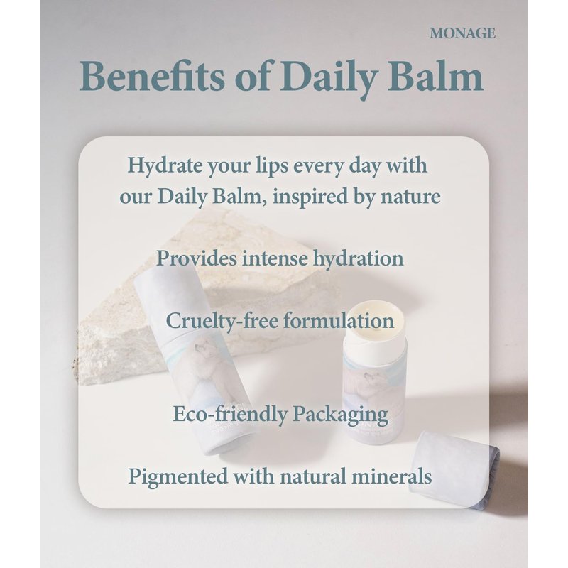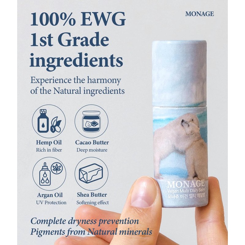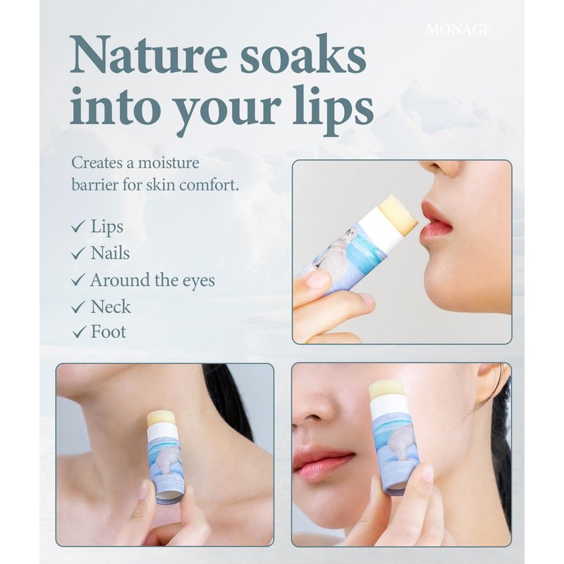 MONAGE Korea Vegan & Nourishing & Moisturizing Lip Care Made from 100% Natural Ingredients, Organic Moisturizer for Dry, Cracked Lips & Skin, Everyday Lip Balm, Daily, 0.38 Ounce