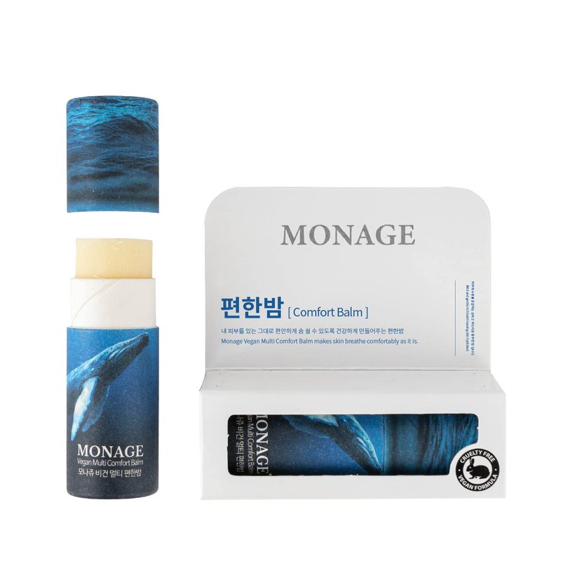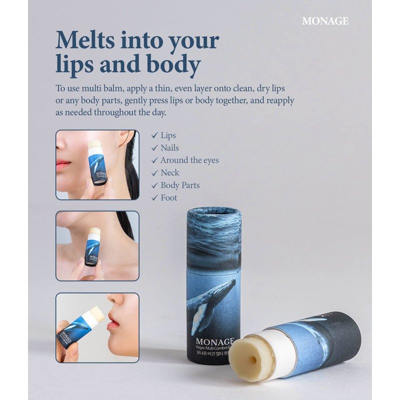 MONAGE Korea Vegan & Organic Lip Balm Butter Stick - 0.42 oz, 100% Natural Ingredients for Dry, Cracked Lips & Skin, Comfort