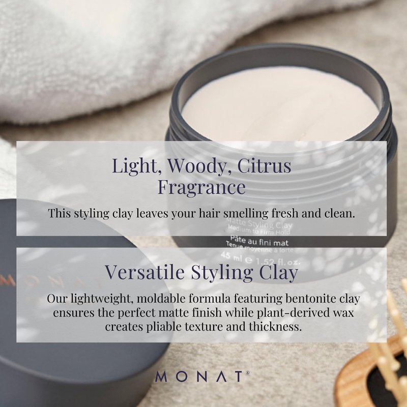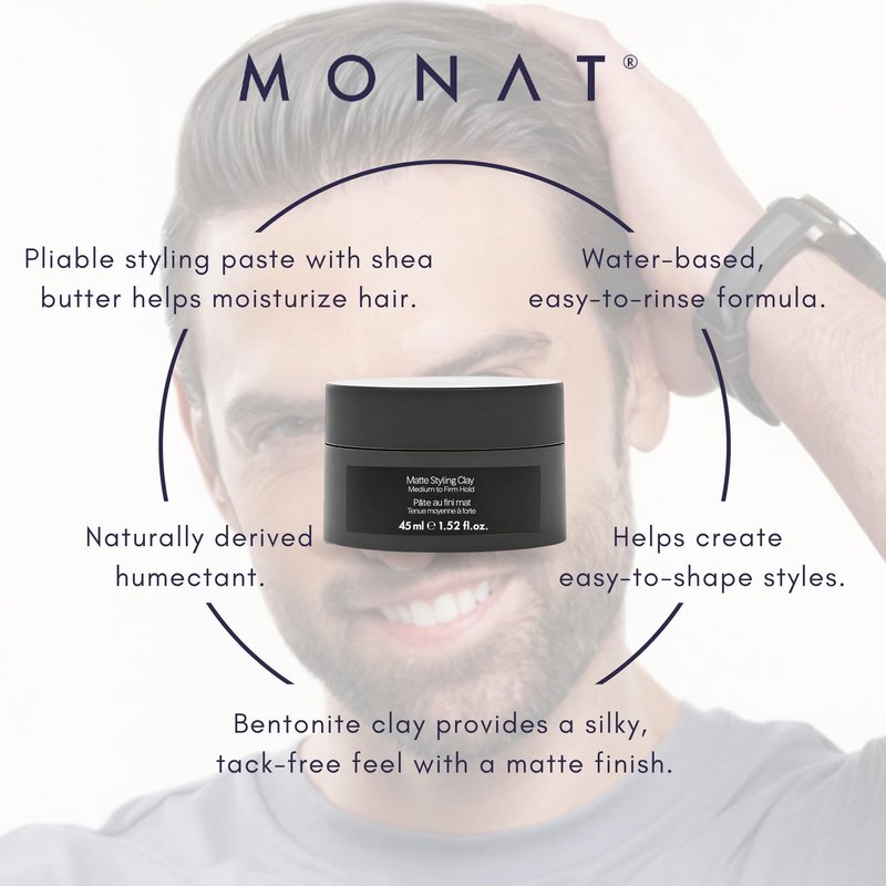 MONAT Matte Styling Clay for Men - Water and Clay-Based Hair Paste to Create Thicker-Looking Hair, Easy-to-Shape Net Wt. 45 ml / 1.52 fl. oz.