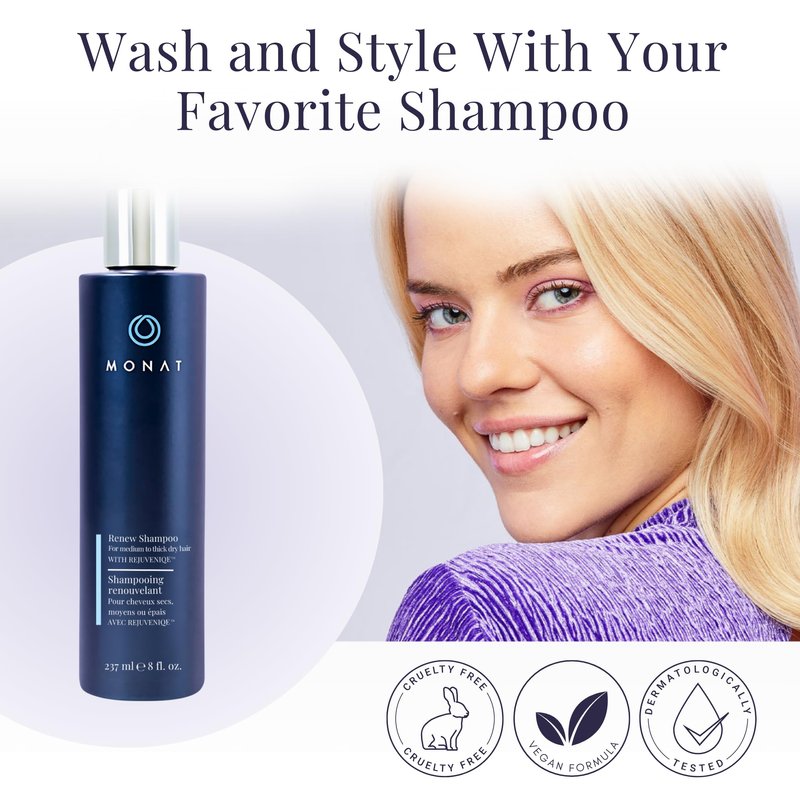 MONAT Renew Shampoo Infused with Rejuveniqe - Moisturizing Shampoo w/ Omega Fatty Acids for Medium to Thick Hair. Shine-enhancing, Ultra-hydrating Lather for Dry Hair - Net Wt. 237 ml / 8.0 fl. oz.