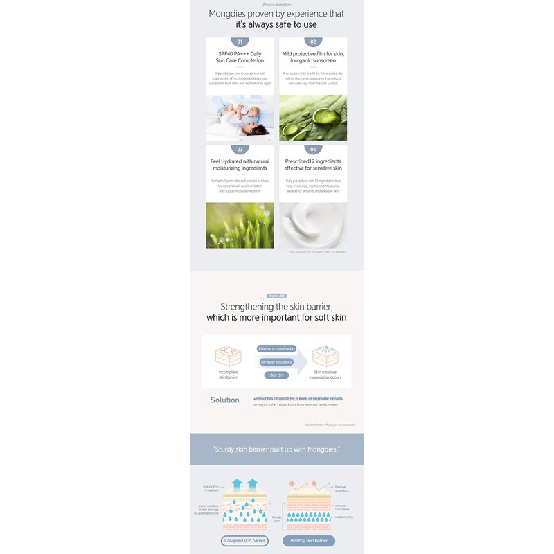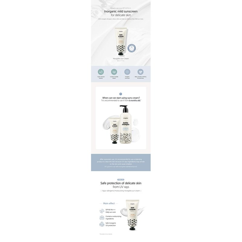 Mongdies Baby Sun Cream SPF30 PA+++ -100% SAFE Moist and Gentle Non-Sticky No White Cast Light-Weight Inorganic Sunscreen, EWG Green, Plant-derived extracts and plenty of deep ocean water- 60ml