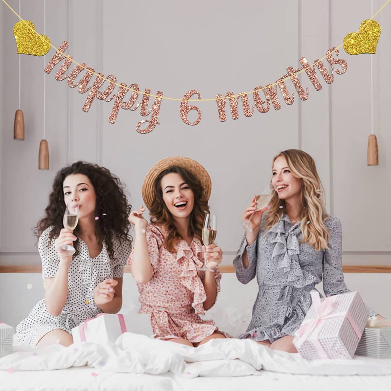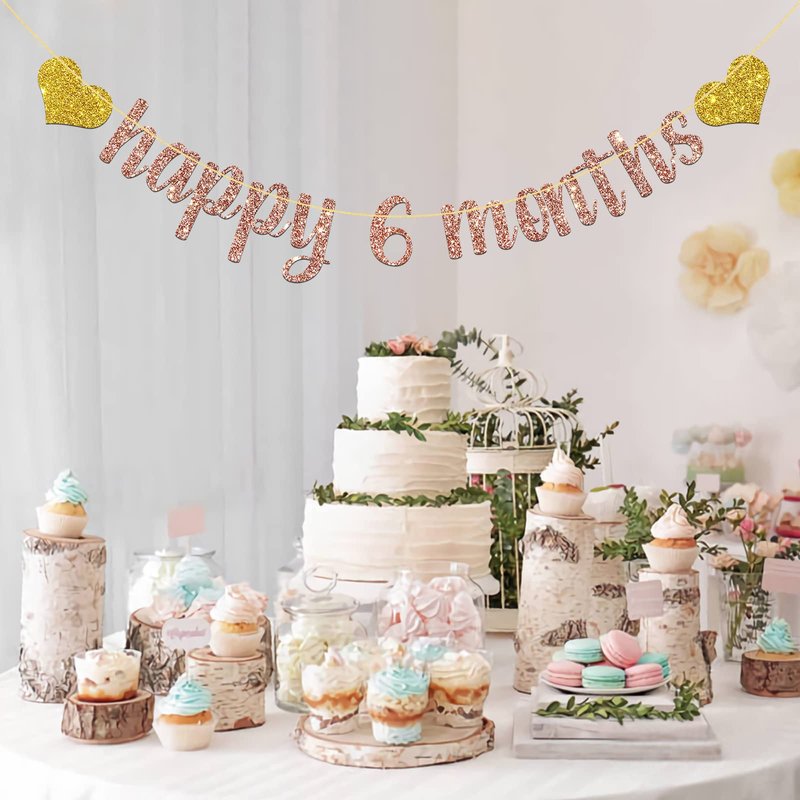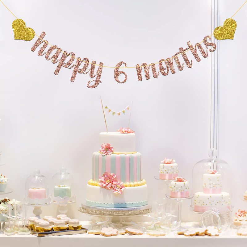 MonMon & Craft Happy 6 Months Banner / Baby Half Year Old Birthday Party Decorations / Baby Shower / Happy 6 Months Party Supplies Rose Gold