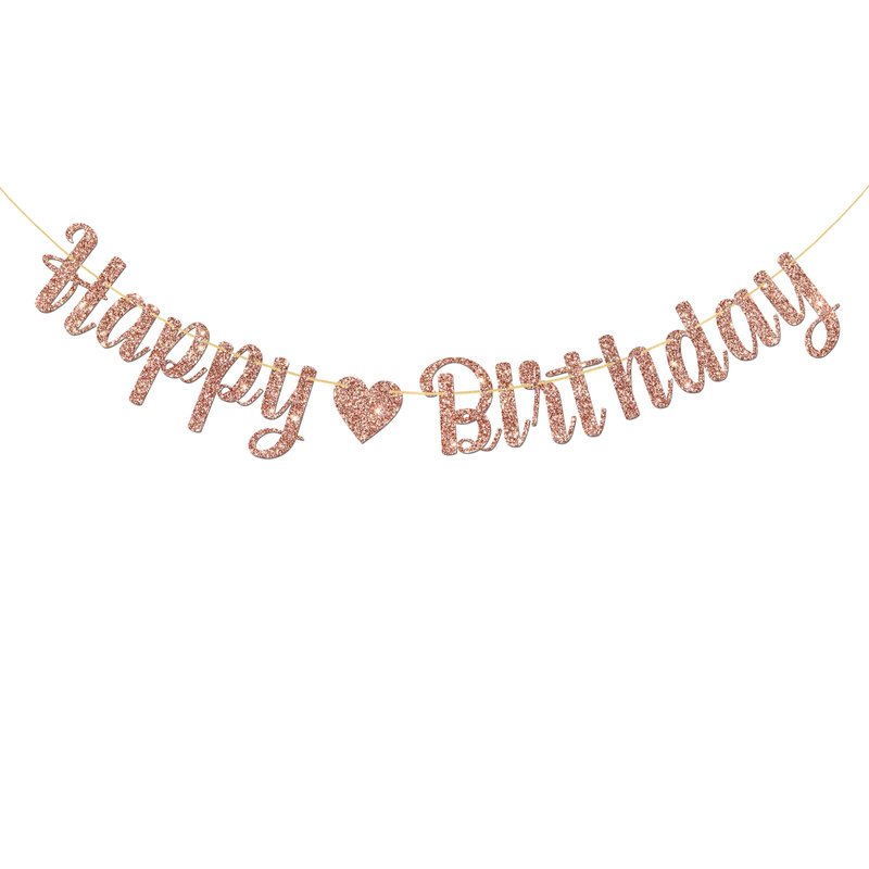 MonMon & Craft Happy Birthday Banner/Children Adults Boys Girls Birthday Party Decor/Birthday Party Decorations Rose Gold Glitter