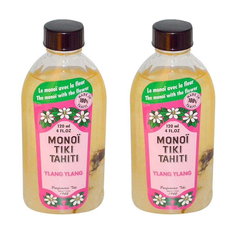 Monoi Tiki Tahiti Ylang Ylang Coconut Oil (Pack of 2), Scented With Fresh Handpicked Tiare Flowers, 100% Made in Tahiti, 4 fl. oz.