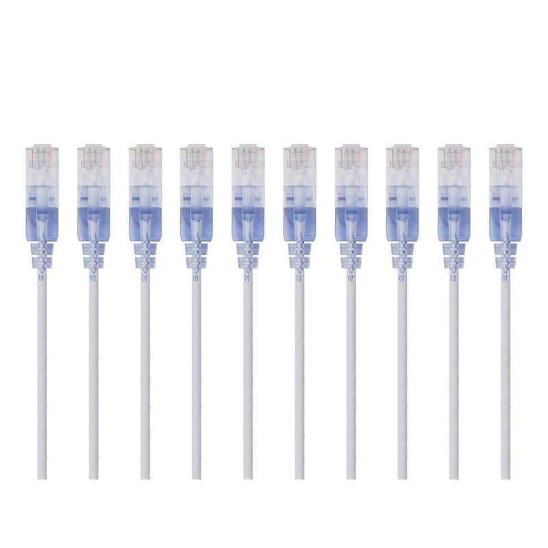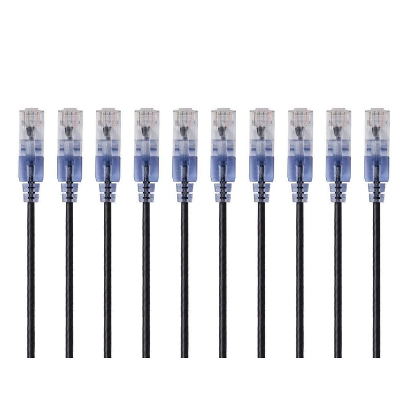 Monoprice Cat6A Ethernet Patch Cable - Snagless RJ45, 550Mhz, 10G, UTP, Pure Bare Copper Wire, 30AWG, 10-Pack, 1 Feet, Blue - SlimRun Series