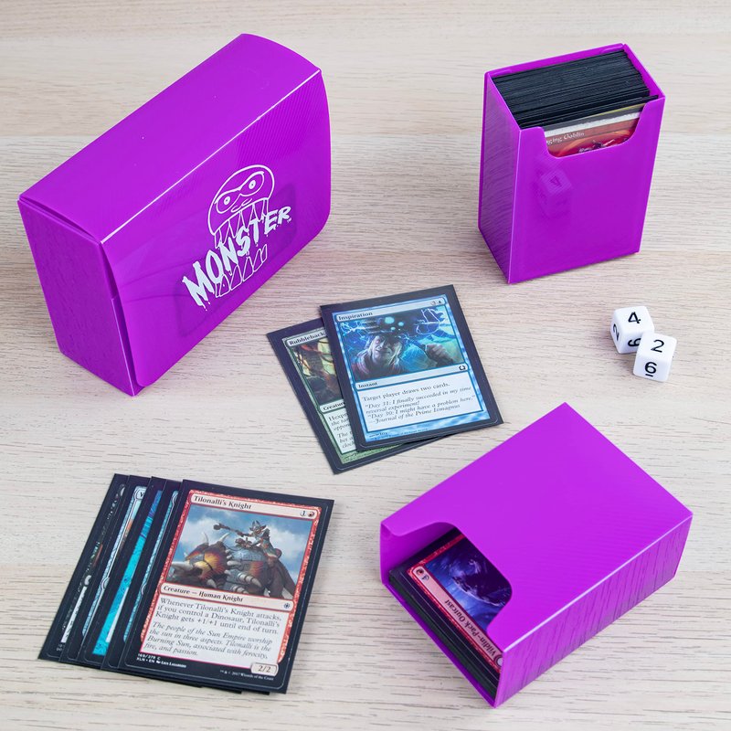 Monster Protectors Magnetic Double Deck Box - Purple, Holds 150 Gaming TCGs, Self-Locking Closure, Compatible w Standard & Smaller Size Gaming Trading Cards, Removable Construction