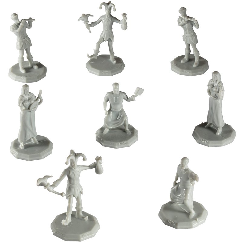 Townsfolk Mini Fantasy Figures - ENTERTAINER WORKERS - 8pc Fully-Paintable Miniatures - 1" Hex-Sized Compatible with DND Dungeons and Dragons, Pathfinder and All RPG Tabletop Games