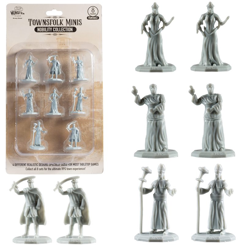 Townsfolk Mini Fantasy Figures - NOBILITY CLASS - 8pc Fully-Paintable Miniatures - 1" Hex-Sized Compatible with DND Dungeons and Dragons, Pathfinder and All RPG Tabletop Games