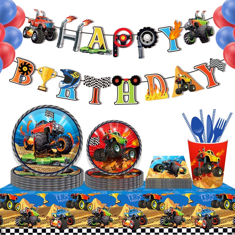 Monster Truck Banner Monster Truck Birthday Party Supplies Monster Truck Birthday Banner Cars Trucks Happy Birthday Sign Monster Truck Birthday Decorations Banner, Race Car Theme Party Supplies