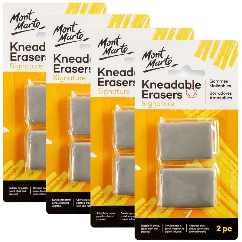 Mont Marte Kneadable Erasers Signature 2pc 4-Pack, Kneaded Erasers for Drawing, Create Highlights, Erase or Lighten Charcoal, Pastel, Pencil, Chalk Artwork, Ideal for Artists, Drawing or Sketching