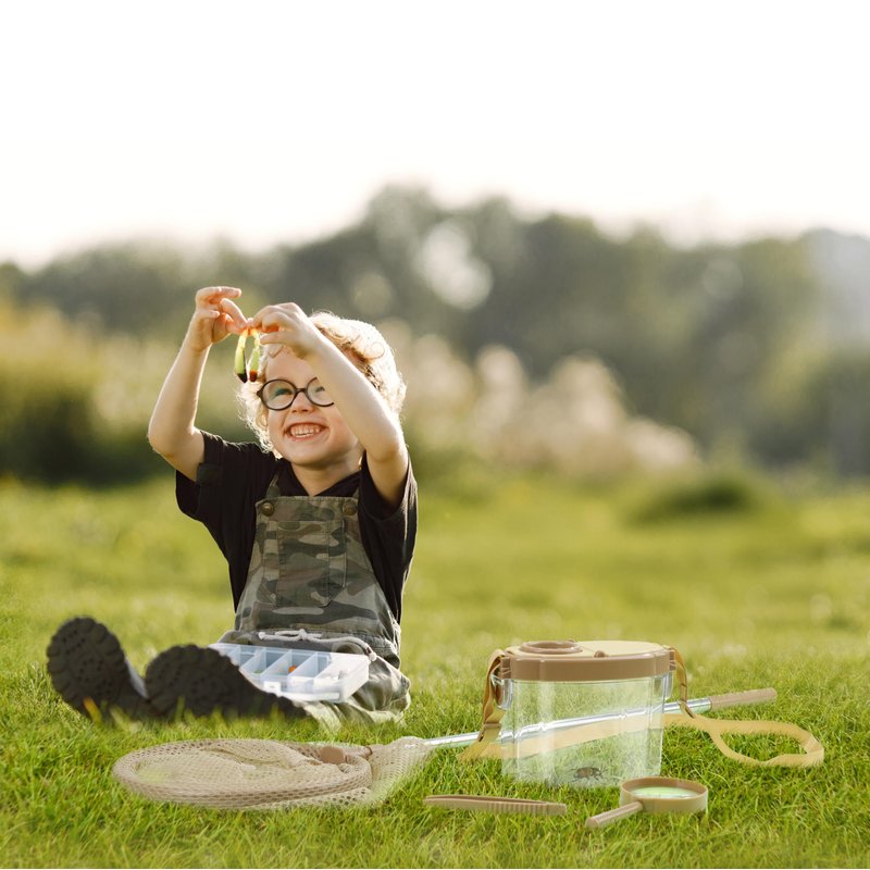 Introduce your child to the wonders of the natural world with the Montessori Mama Kids' Bug Catching Kit – a complete set designed for educational fun and outdoor adventure. This thoughtfully curated kids camping kit provides all the tools young explorers need to safely observe and learn about insects in their natural habitats, making it an ideal choice for parents who value hands-on learning and quality playtime. Our bug-catching science kits features a spacious bug box with an easy open-close design, allowing children to securely observe their catches before releasing them back into the wild. The built-in magnified viewer enhances the experience, giving kids a closer look at their tiny friends. The adjustable carry strap adds convenience, making it easy to bring the habitat along on hikes, trips to the park, or backyard explorations. What sets the Montessori Mama Bug Collection Kit for Kids apart from the competition is the inclusion of an extendable bug net. This tool allows kids to reach and catch insects from a distance, adding an extra layer of excitement to their adventures. Also included are bug capsule scissors for safe transfer of insects, tweezers for gentle handling, and a magnifying glass for detailed examination, ensuring that every aspect of bug-catching is covered. Beyond the thrill of the hunt, this bug catchers container toy serves as a powerful educational tool. It encourages children to explore the outdoors, observe nature closely, and develop a deeper understanding of the environment. The process of catching, studying, and releasing insect and caterpillar fosters a sense of responsibility and respect for living creatures, making it a valuable addition to any child's learning journey. Whether for a birthday, holiday, or simply as a special surprise, the Montessori Mama Kids Bug Catching Kit makes for an unforgettable gift. Packaged in eco-friendly materials and available with gift wrapping and personalized messaging at checkout, it’s the perfect way to inspire a love for nature and learning in young minds. Choose Montessori Mama’s Bug Catcher Kit for Kids to ignite your child’s passion for exploration and discovery, offering endless opportunities for educational outdoor play activities.