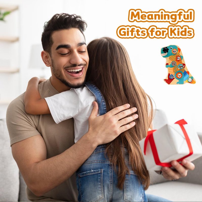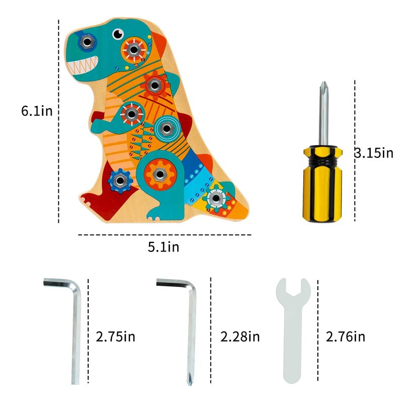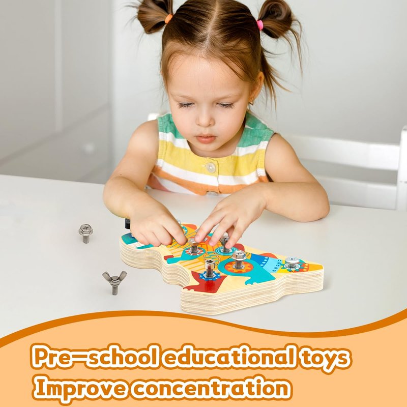 - FUN DINOSAUR BUSY BOARD: This tool set for kids includes the outer octagon, Phillips, hexagonal socket and large hexagonal socket, your child can safely practice removing and re-inserting the 8 different insertion screws, immersing your child in role-playing games, practicing hands-on skills and life skills, which is a creative and fun process!