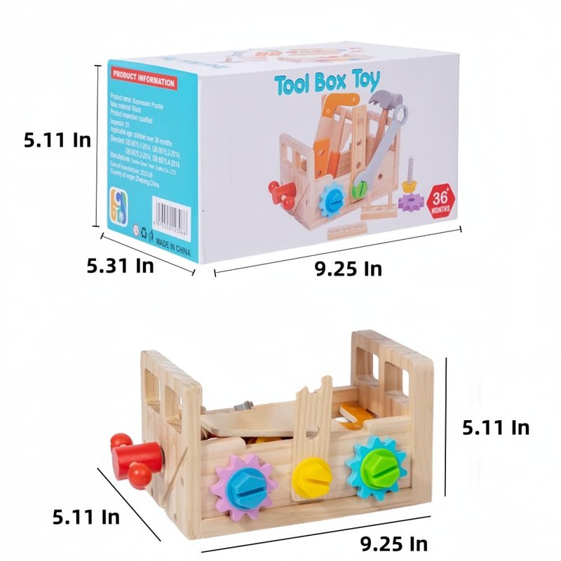- Features: Rich toy functions, storage box on both sides can be freely assembled, diverse play. It is equipped with a variety of screws and nuts, as well as screwdriver tools, wrenches, rulers, wooden hammers, pliers and other common wooden tools suitable for children's hands, assembled portable design, not only can cultivate a good habit of storage, but also allow children to enjoy the fun of the game anytime and anywhere