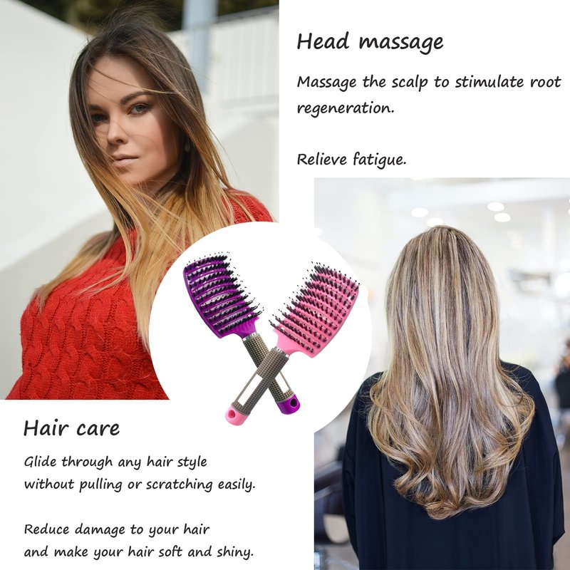 - 【MOODKEY Package】: You will get 2pcs boar bristle hair brushes, in pink color and purple color, which can meet your family daily needs.