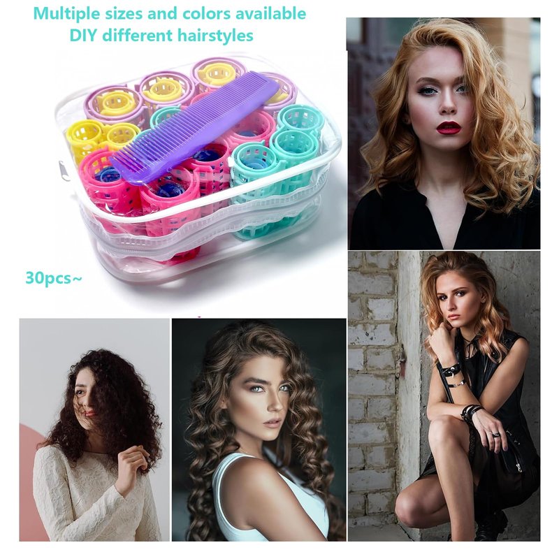 SPECIFICATIONItem: 30PCS Self Grip Hair Curlers SetMaterial: high-quality plasticColor: blue, pink, green, yellow, purplePackage Weight: 90gFEATURES:1. Our self grip hair rollers are made of high-quality plastic, sturdy and durable, friendly to your skin and comfortable to wear, not easy to fade, you can use them with confidence.2.Our hairdressing rollers can fix the hair and curls in place, no need for pins or clips, and the self grip rollers can shape your hair smoothly without indentation.PACKAGE INCLUDED:30PCS Self Grip Small Hair Curlers