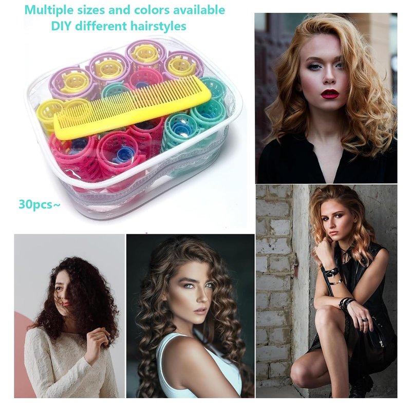 - 【MOODKEY Package】: You will get 30pcs self grip hair curlers set in pink, blue, purple, green, yellow color with yellow small comb in the package, which is sufficient to meet your different hairdressing needs.